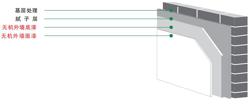 5、施工工藝:基層修補→清掃→填補膩子→磨平→底涂一遍→無機面涂兩遍